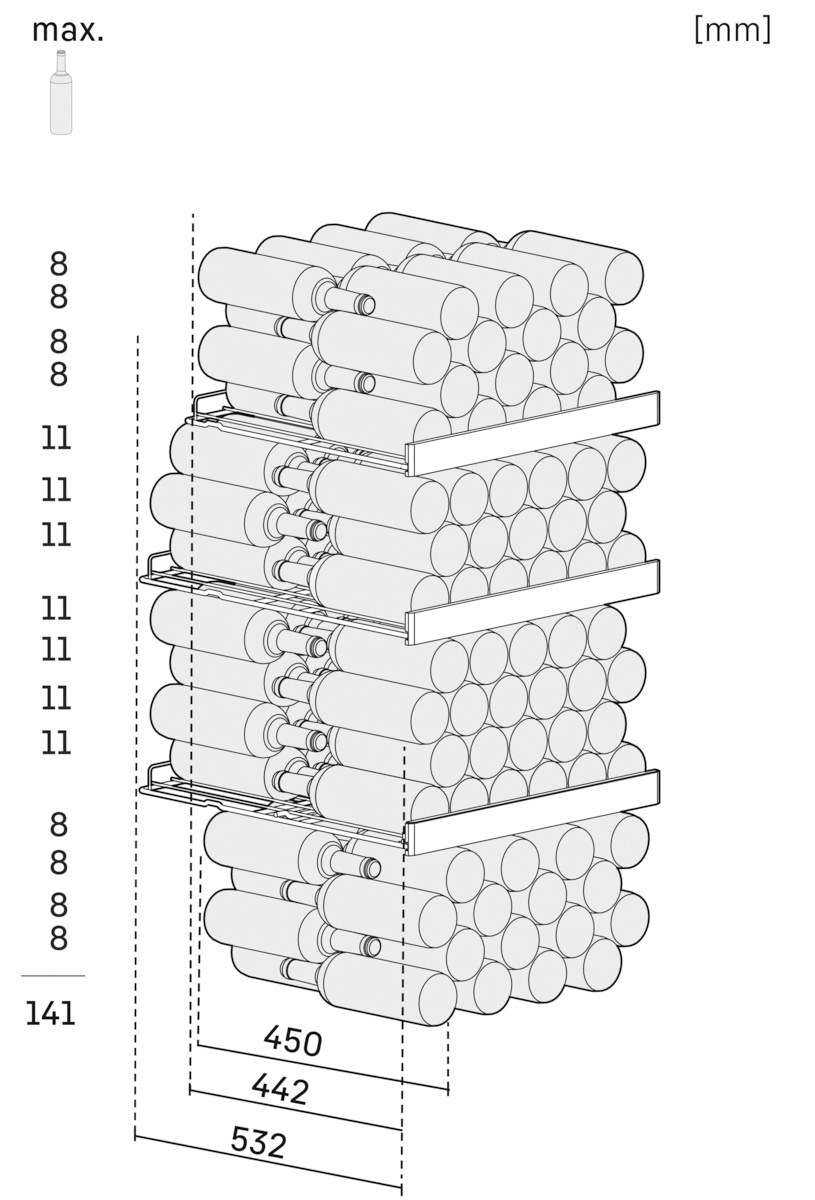 | Maximální počet láhví Bordeaux 0,75 l ** |