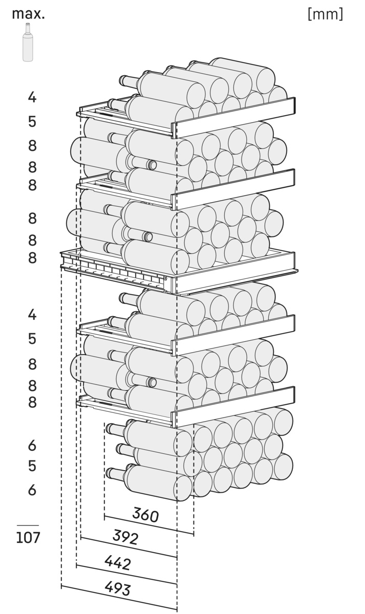 | Maximální počet láhví Bordeaux 0,75 l *** |