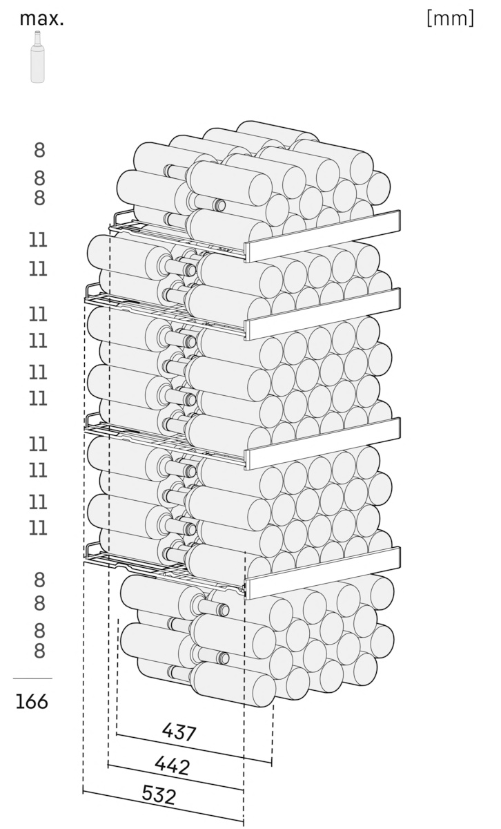 | Maximální počet láhví Bordeaux 0,75 l ** |