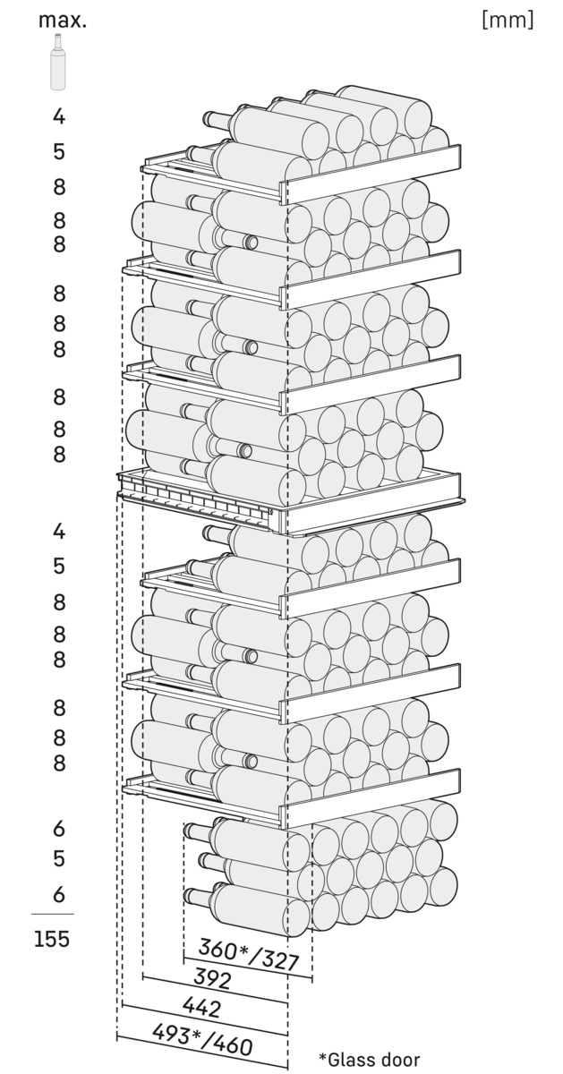 | Maximální počet láhví Bordeaux 0,75 l *** |